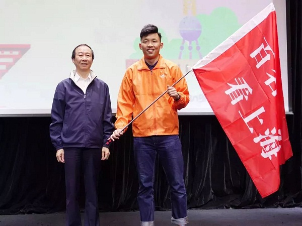 市海促會會長李雷鳴宣布開營并向臺灣學生代表授以營旗