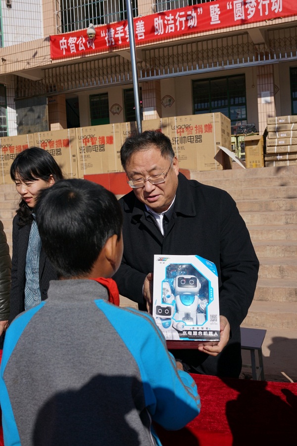 1月18日上午,卜玉龍董事長一行驅(qū)車來到姚安縣前場鎮(zhèn)前場小學(xué),舉行“中智公司姚安縣愛心捐贈儀式”。去年10月,中智公司在第5個“10.17”國家扶貧日到來之際啟動“奉獻(xiàn)一片愛心,改變一種命運(yùn)--中智公司2018年大型慈善捐贈活動”,動員中智公司的合作伙伴和內(nèi)外部員工為貧困地區(qū)中小學(xué)和學(xué)生捐贈愛心物資和善款,其中捐資助學(xué)項(xiàng)目由“圓夢行動”和“攜手集善?助潔行動”組成,活動受到積極響應(yīng),“圓夢行動”和“攜手集善?助潔行動”共收到1416名愛心人士捐贈的資金37.6萬元。共為姚安、大姚兩縣全部214所山區(qū)中小學(xué)校捐贈洗衣機(jī)313臺,為前場鎮(zhèn)3所中小學(xué)優(yōu)秀學(xué)生實(shí)現(xiàn)心愿夢想142件,為山區(qū)的孩子們送去關(guān)愛和溫暖!捐贈儀式上,中智公司黨委副書記、扶貧開發(fā)領(lǐng)導(dǎo)小組常務(wù)副組長張杰代表中智公司將為姚安縣81所中小學(xué)捐贈的89臺洗衣機(jī)移交給姚安縣委副書記、縣委組織部部長林幫榮。在前場小學(xué)全體師生的見證下,在孩子們驚喜的眼神中,卜玉龍董事長一行和楚雄州、姚安縣及前場鎮(zhèn)的領(lǐng)導(dǎo)們將孩子們夢想心愿中想得到的物品送到孩子們的手中,實(shí)現(xiàn)“圓夢行動”的“圓夢”目標(biāo)。